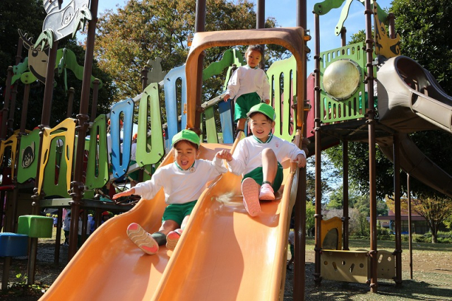 大崎公園へ出かけて、遊具で遊んだりどんぐり拾いをしたり、楽しい時間を過ごしてきました。