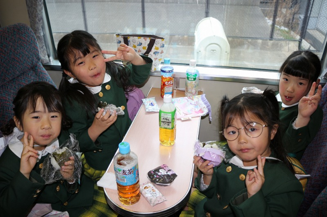 年長さんたちは、幼稚園での最後の遠足で鉄道博物館へ行ってきました。汽車・電車の歴史や仕組みなどたくさん見学し、自分たちで目標をたてて勉強してきました。昼食はランチトレインの車内で美味しくいただきました。楽しい一日を一緒に過ごし好い想い出となることでしょう。