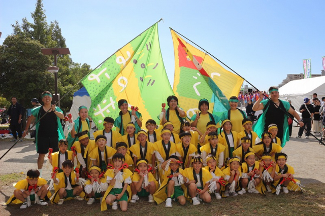 第33回草加商工会議所まつりのステージで、年長さん有志31名のおともだちが、たくさんのお客さんの前で「みのべよさこい」を披露しました。元氣いっぱいの発表を見せてくれました。